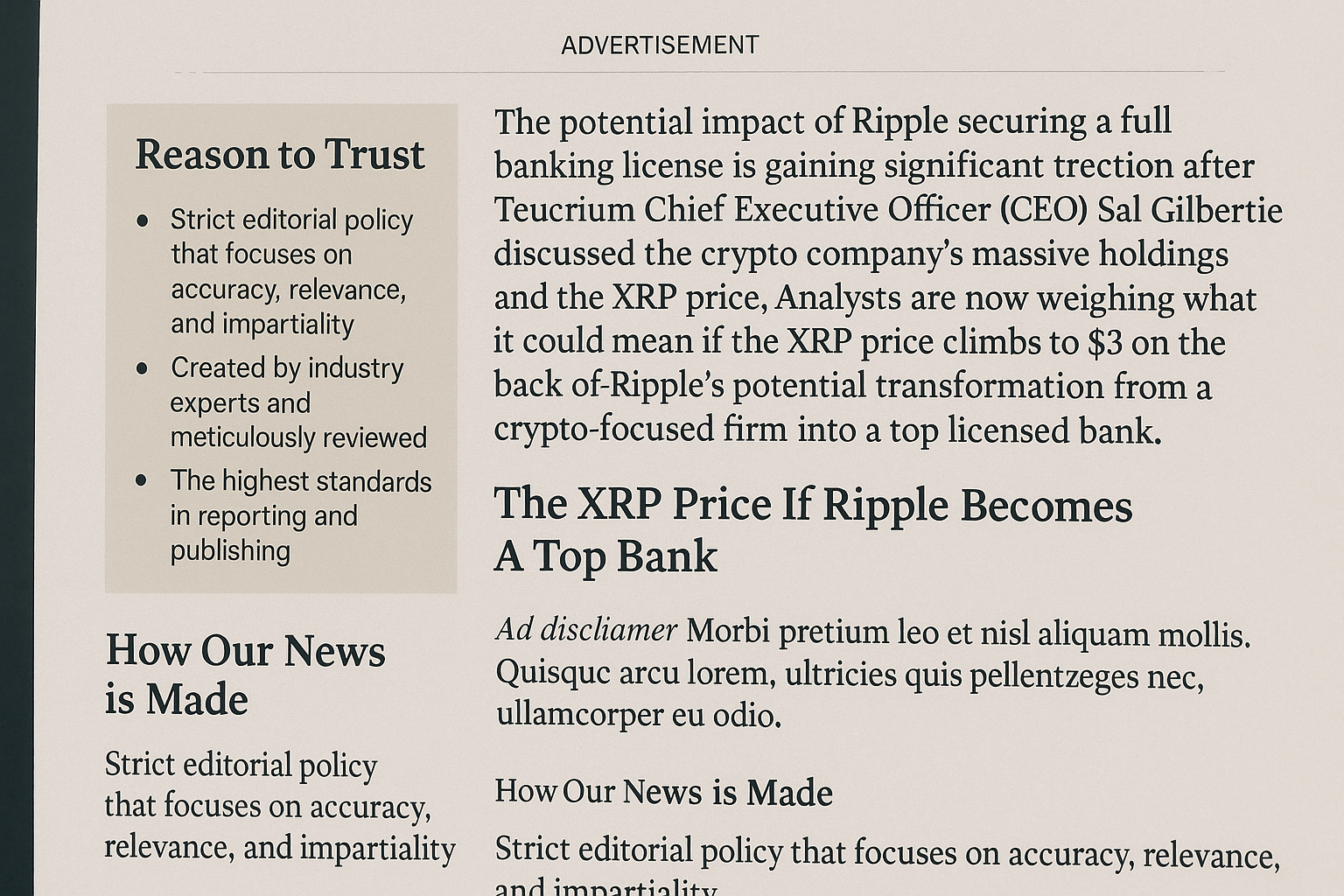 The discourse surrounding Ripple’s potential to obtain a full banking license is gaining momentum, following insights from Teucrium CEO Sal Gilbertie regarding the company’s significant XRP holdings and the implications of its price. Analysts are now considering what could transpire if XRP ascends to $3 amidst Ripple’s planned evolution from a cryptocurrency-centric operation to a top-tier licensed bank. In a recent discussion on X, a crypto market expert posited that Ripple could rank among the top 20 global banks by market capitalization should it achieve this regulatory milestone. The conversation featured a video interview with Teucrium CEO Paul Barron. During the exchange, Gilbertie illustrated a scenario where Ripple could emerge as one of the largest banks worldwide by simply retaining its existing XRP assets. He pointed out that securing a full banking license could significantly enhance Ripple’s balance sheet value, leveraging the 40 million XRP currently held in escrow as a key strategic asset in a regulated banking framework. He also projected that a successful banking designation could propel XRP’s value to $3, potentially enabling Ripple to rank amongst the world’s leading banks. Furthermore, the interview delved into the potential of on-chain applications and traditional financial infrastructures, with Barron inquiring about the future of leveraged ETFs on-chain, to which Gilbertie responded affirmatively, suggesting a future where traditional finance is fully integrated with digital assets and blockchain technology. On the regulatory front, Ripple continues to navigate pathways toward achieving bank-like authority in the U.S., having received preliminary conditional approval from the Office of the Comptroller of the Currency for a national trust bank charter. While final approval is pending, Ripple is strategically enhancing its payment infrastructure through acquisitions, partnerships, and stock buybacks. As for XRP, the cryptocurrency is currently trading at $1.43 after a 14% rise earlier this week, maintaining a bullish outlook among analysts despite recent slight retracements.